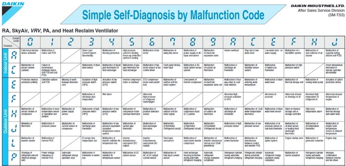L8, arus berlebih dari kompresor inverter ; Kode error ac daikin, ac daikin berkedip,kerusakan ac daikin dan cara mengatasinya. L4, adanya kenaikan pada temperatur kipas/fan radiasi inverter. L5, terjadi kemacetan pada motor kompresor inverter . Kode error ac daikin vrv 4 ;